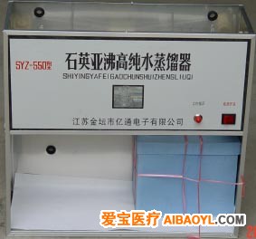 石英亚沸蒸馏器是制取高纯试剂和高纯水的全封闭石英玻璃仪器,它具有独特的优点。其技术先进,结构新颖美观,安装操作,维修简便。石英亚沸蒸馏是利用热辐射原理,保持液相温度低于沸点温度蒸发冷凝而制取高纯水和高纯试剂。而一般的石英蒸馏器,因沸腾蒸馏,气中夹带水珠,气液分离不完全,致使水质不高;全玻璃蒸馏器,更因玻璃本身所含的污染,水质更差;离子交换水,又因有机物质的溶解带入有机物的干扰。