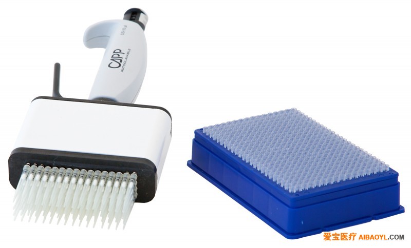 大多数涉及384孔板的应用都必须通过自动化系统执行。CAPP提供世界唯一的高便捷、高精确度的16道、48道和64道多道移液器,从此高昂的自动化设备不再是必须。