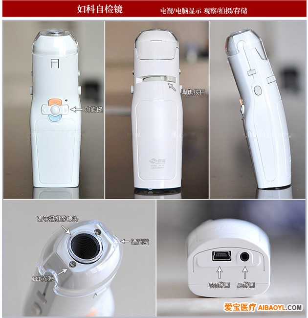 “妇科自检镜”主要功能是通过连接电视(电脑)成像和拍摄,观察女性宫颈为主生殖道的健康情况,实现女性妇科疾病自我检查的目的。 “妇科自检镜”也适用于医疗机构作为小型便携成像设备,与妇科窥器合并使用,用于妇科检查和记录。