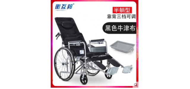 互邦轮椅HBG20-B老人轻便折叠手动钢管半躺靠背残疾人