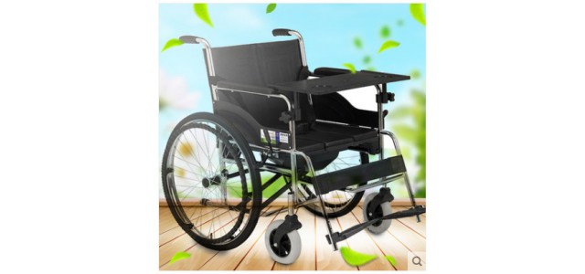 互邦轮椅带坐便加厚钢管带餐桌老人残疾人手推车HBG15-B