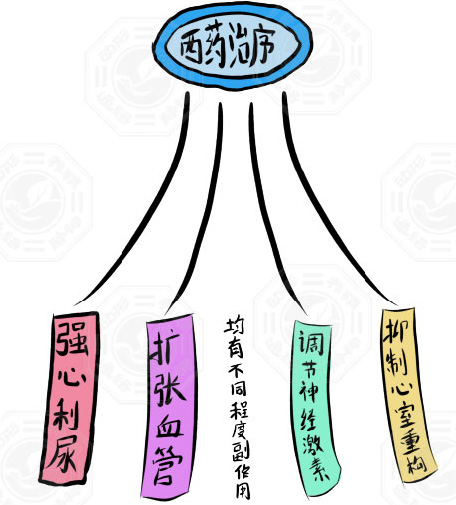 西药治疗慢性心衰,有四种最基本的常见治疗药物,它们分别是利尿剂、ACEI(或ARB)、β受体阻滞剂和强心药,这四种药物从强心和利尿、扩张血管、调节神经激素、抑制心室重构四方面入手,对慢性心衰进行治疗。