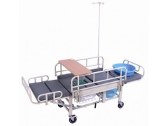 该床是针对医院和生活不能自理的病人、残疾人、危重病人、瘫痪病人的特殊需要而设计的,解决了长期以来普遍存在的病人大小便、吃饭、移动、看书、写字、娱乐难等多方面的问题。并满足患者生理和心理上的要求,提高康复力,大大减轻护理负担。轮椅式的设计,病人躺在床上可以调节平卧、半卧、直坐三种姿势。还可以对腿部的角度进行调节;病人还可以在床上看书、写字、就餐,带有便厕的设计,让人还可以在床上大、小便。其人性化的设计,解决了一系列护理难的问题。