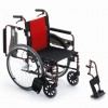 座靠垫采用上等布料,久坐不下陷,搭配红色透气网状靠垫,既美观又舒适。 可掀式扶手及可打开式护腿让使用者上下轮椅车更方便。
