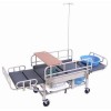 端坐式: 端坐时能满足患者吃饭、看书、写字及室外活动。平卧式: 床面系分离式弹性软垫,透气性好,适当变换体位可以防止褥疮,可根据需要调整床体加宽变窄,护栏也能直立和下垂,来满足各种需要。 无论床面加宽和变窄,护栏都能直立和下垂。 半卧式: 调整床体,背部为汽弹簧自动升降,可减轻患者头部的震动;足部为手提式自锁,上下调整可使患者下肢达到舒适状态。平放时腿部护拦和头部护拦可加长或床头上下放。 手摇式自动输送便器,并配有安全带,餐桌,输液吊架。 床底配有万向脚轮能移动变成轮椅并有刹车装置