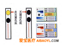 四环牌 132℃压力蒸汽灭菌化学指示卡在压力蒸汽灭菌处理温度、温度持续时间和蒸汽的饱和度均达到要求的标准条件下,指示色块由淡黄色变为标准色块的灰黑色或黑色。