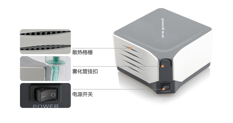 鱼跃医用级空气压缩式雾化器 采用无油高效活塞泵 外观小巧,圆润 噪音低 雾化颗粒细