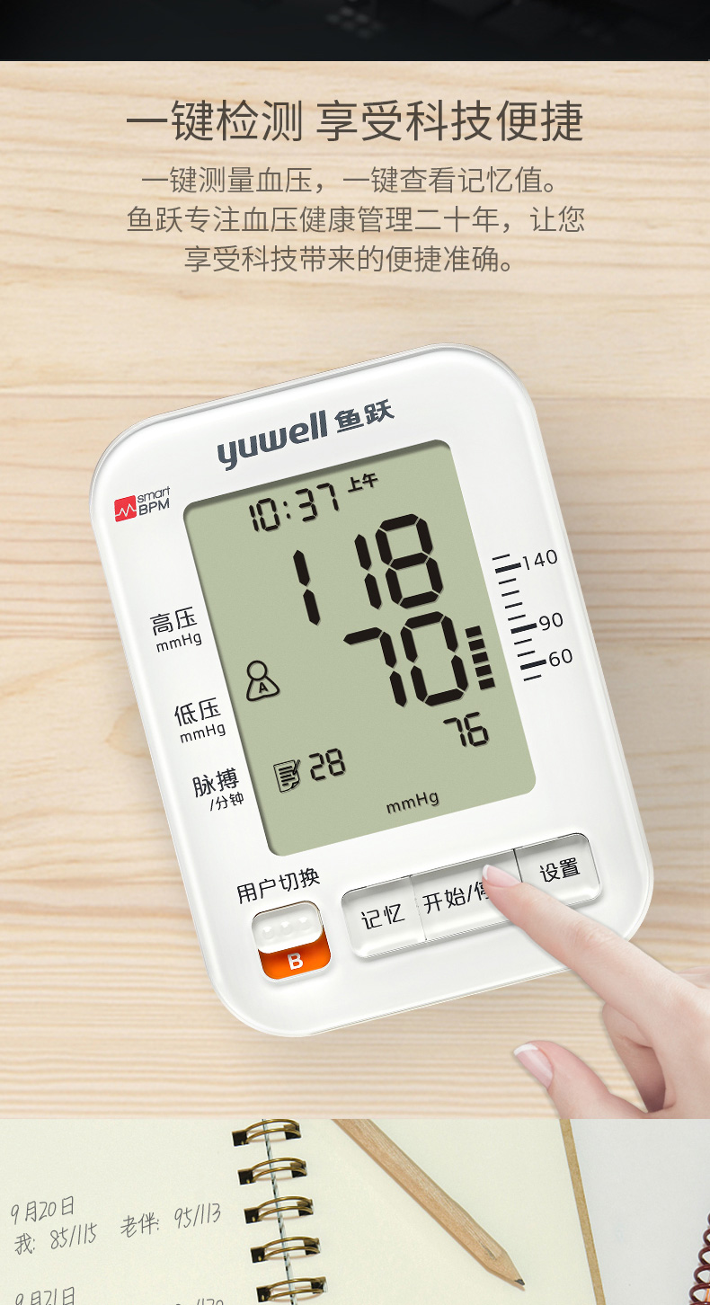 鱼跃电子血压计旗舰店同款臂式语音