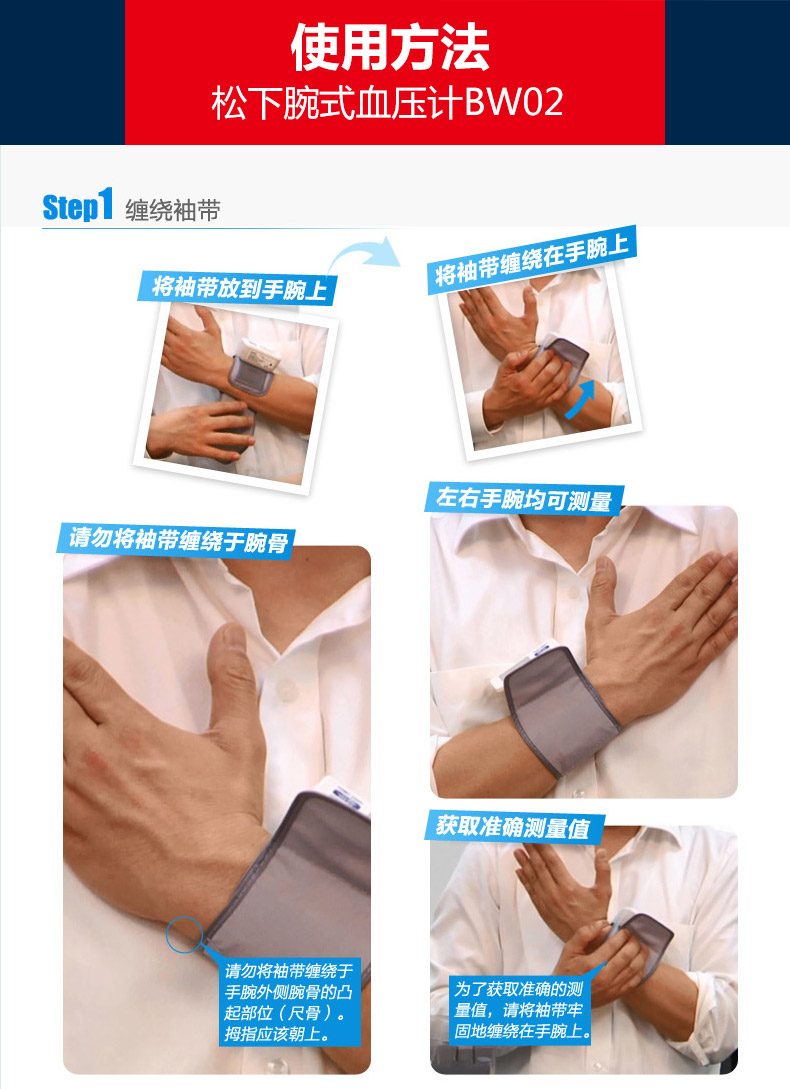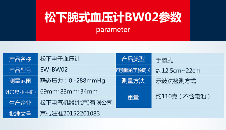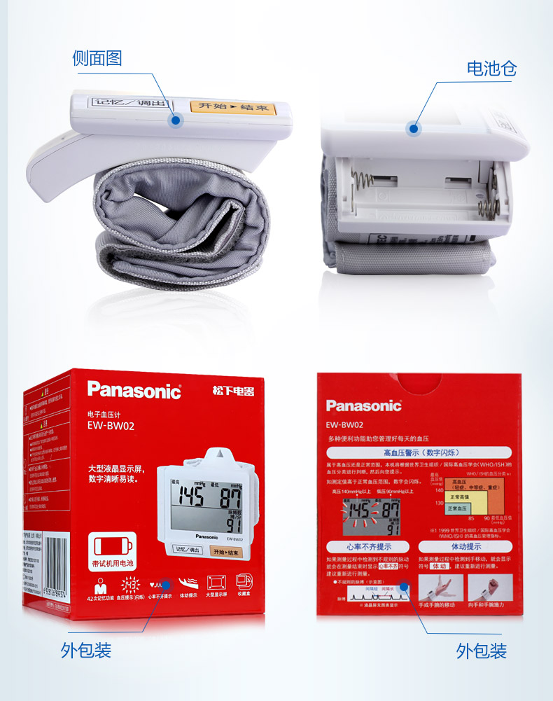 松下手腕式便携式电子血压计家用老人全自动
